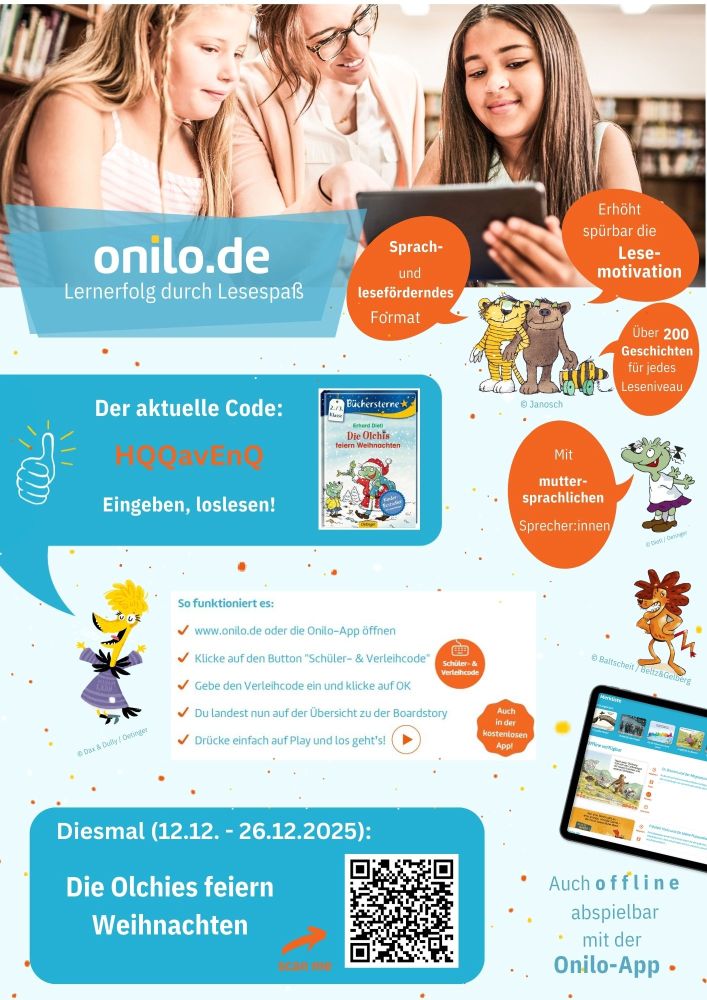 Im zweiwöchentlichen Rhythmus bekommen Sie einen Code, mit dem sich über Handy oder Tablet eine kostenlose Boardstory zu jeweils einem Bilderbuch öffnen lässt.