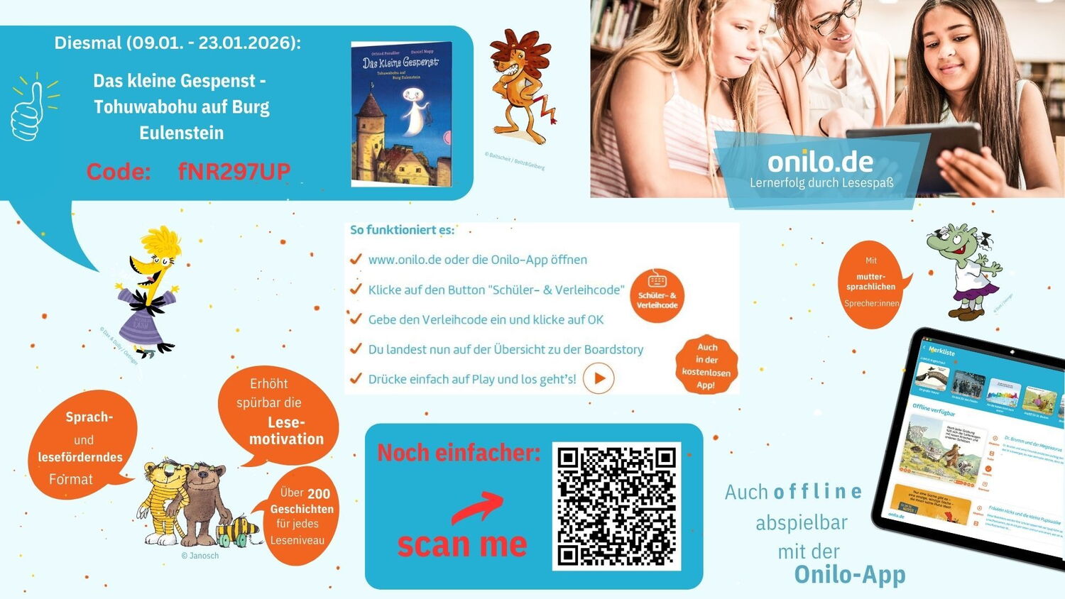 Im zweiwöchentlichen Rhythmus bekommen Sie einen Code, mit dem sich über Handy oder Tablet eine kostenlose Boardstory zu jeweils einem Bilderbuch öffnen lässt.