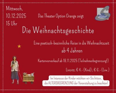 Das Theater Option Orange zeigt für Kinder ab 4 Jahren das Stück "Die Weihnachtsgeschichte"