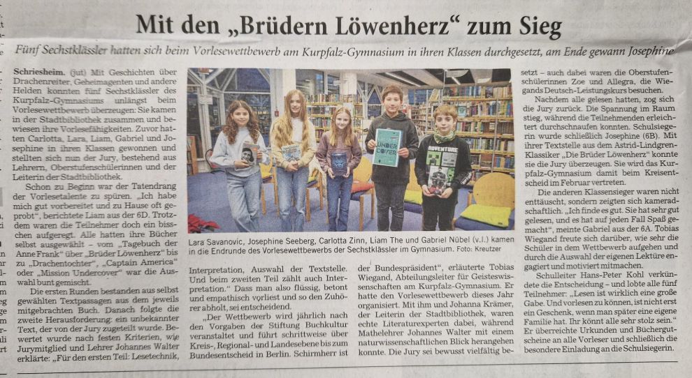 Vorlesewettbewerb des Kurpf. Gymnasiums am 11.12.25 in der Stadtbibliothek